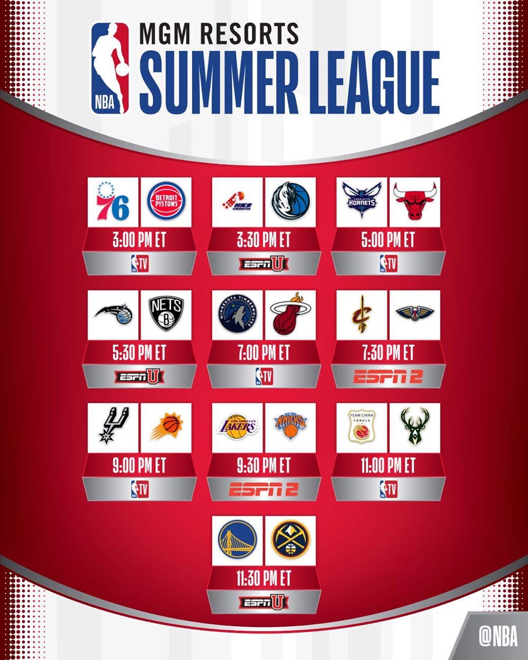 10 games featured in Wednesday’s @nbasummerleague action!