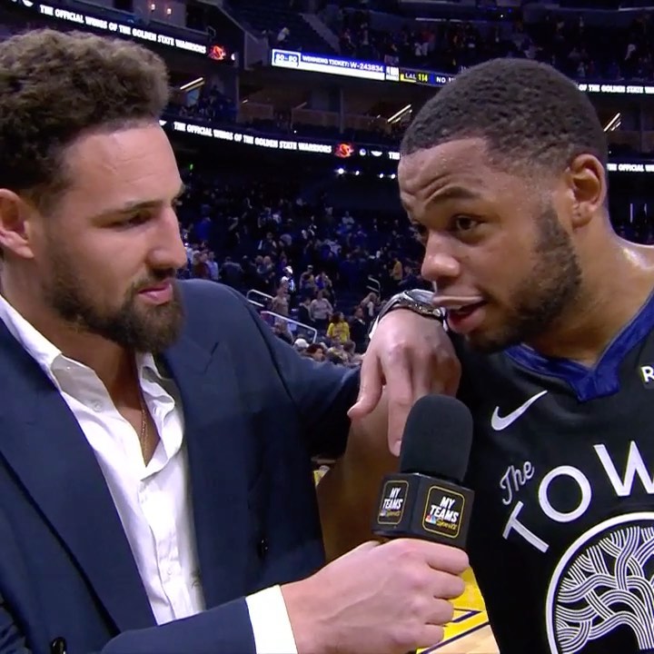 @klaythompson takes over the postgame interview with @omarispellman!