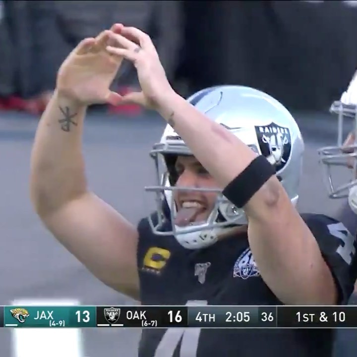 NFL’s social media post titled Carr held up an “O” for Oakland in the last game at the Coliseum. … is credited to NFL on instagram account nfl and currently has 250296 likes as of posting.