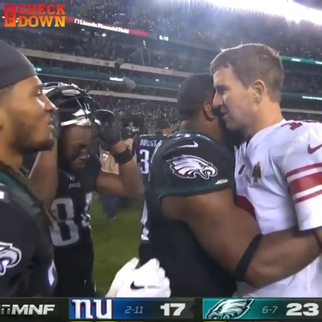 @philadelphiaeagles players lined up to show love to Eli after #MNF ? (via @thecheckdown)