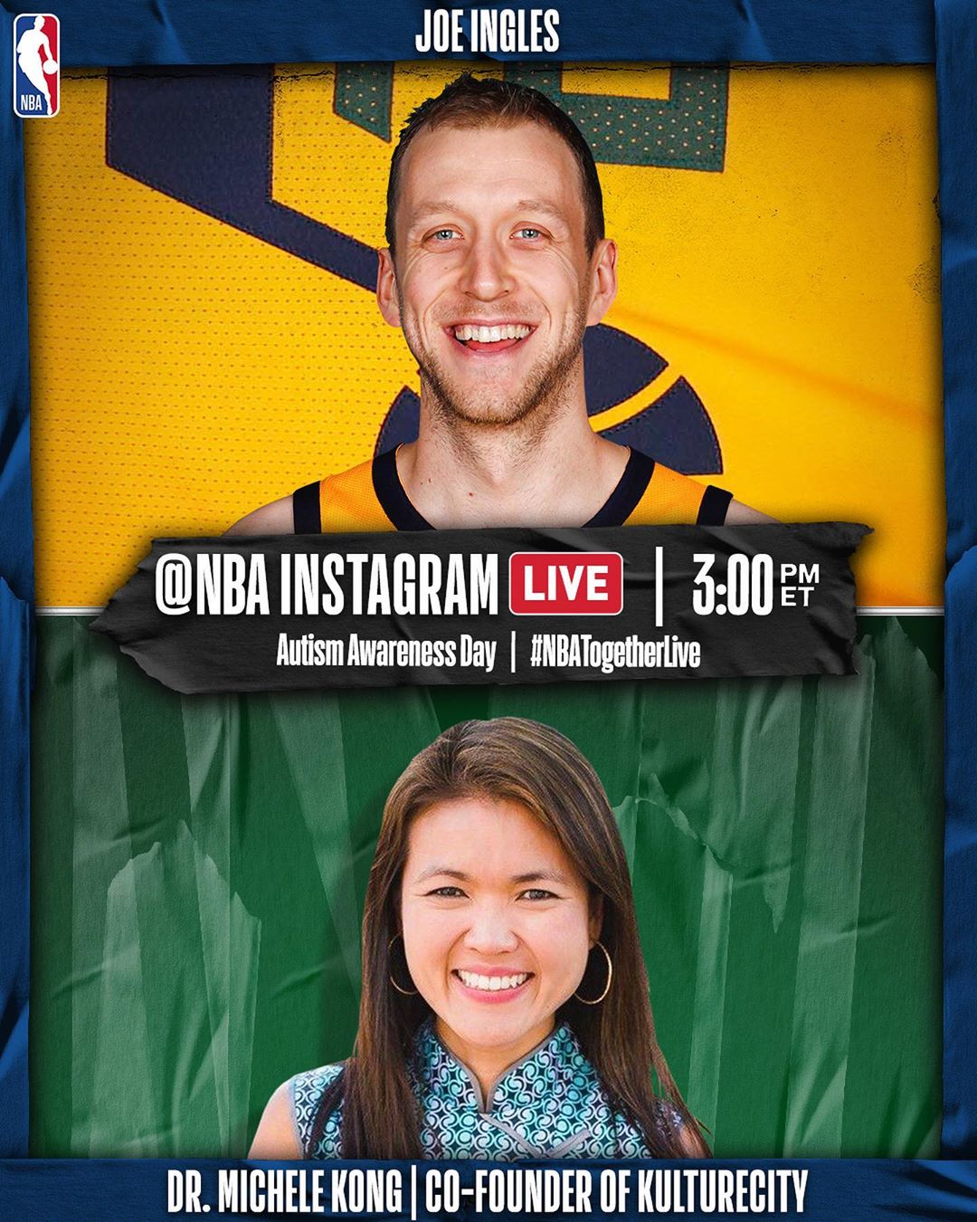 For #WorldAutismAwarenessDay, @joeingles7 of the @utahjazz and @kulturecity co-founder Dr. @michele_kongmd will discuss the challenges of parenting a child on the autism spectrum amid the current situation on our @NBA IG Live at 3:00pm/et! #NBATogetherLive