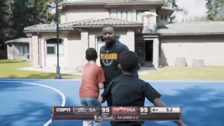 NBA’s social media post titled & his sons James & Jaiden recreate clutch triple in Game 6 of the 2013 at hom… is credited to #NBATogether on instagram account nba and currently has 551383 likes as of posting.