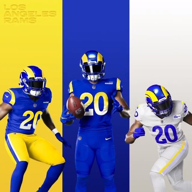 NFL’s social media post titled The Rams’ new uniforms! (via … is credited to NFL on instagram account nfl and currently has 93585 likes as of posting.